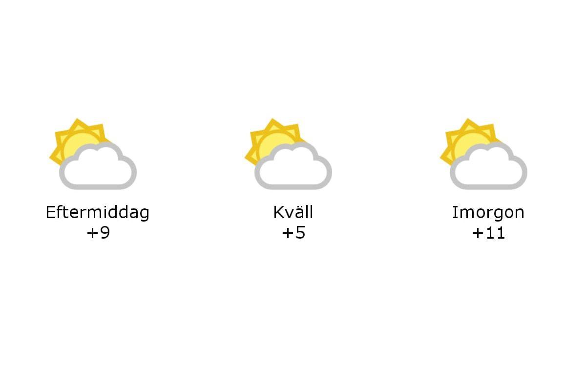 På måndagen blir det halvklart med svaga vindar och temperaturer runt 11 grader.