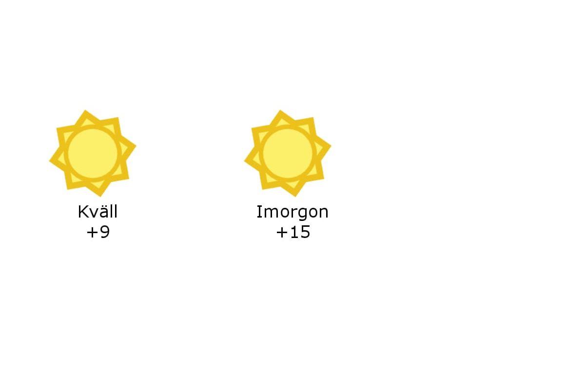 På tisdagen blir det klart med svaga vindar och temperaturer omkring 15 grader.