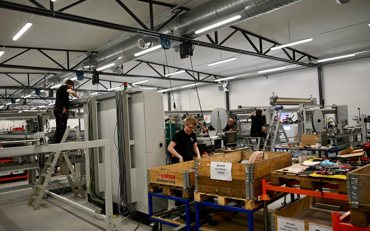 Det är ett företag i Storbritannien som står bakom den stora beställningen och när Mark-Posten besöker fabriken så håller ett team som bäst på att sätta ihop en produktionslinje som är 15 meter lång och som består av flera sammankopplade maskiner.