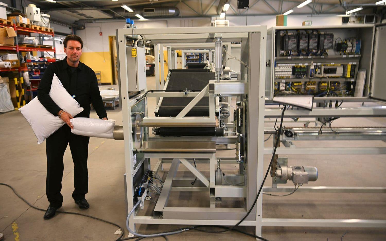 – Vi är den största leverantören inom maskiner som gör täcken och kuddar, säger Oscar Askerdal.