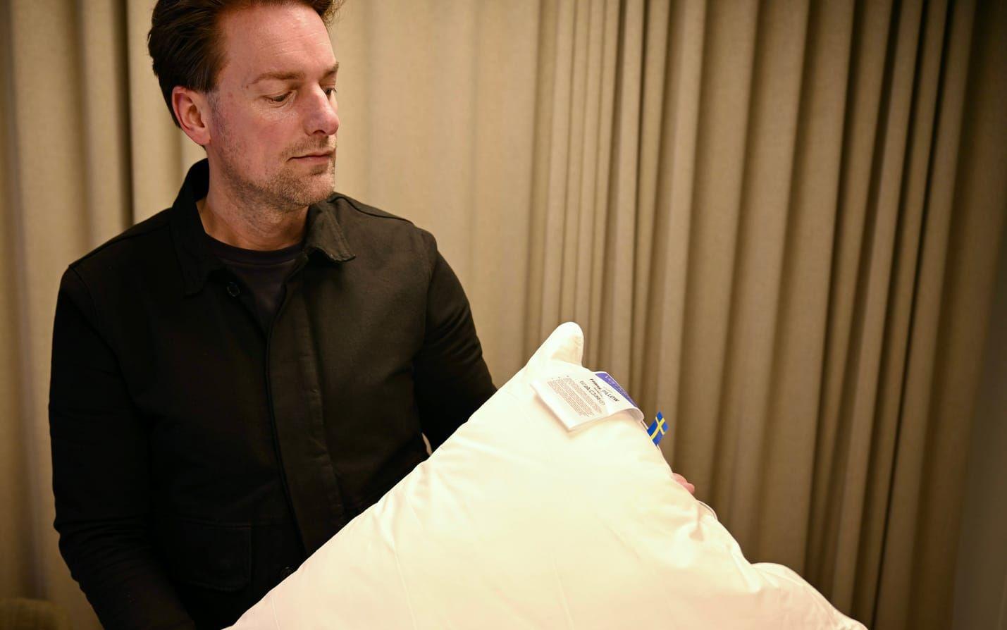 Många hotell i Sverige har kuddar från Värnamo och Oscar Askerdal avslöjar att han ofta öppnar örngott och kikar bland sängkläderna är han bor på hotell.
