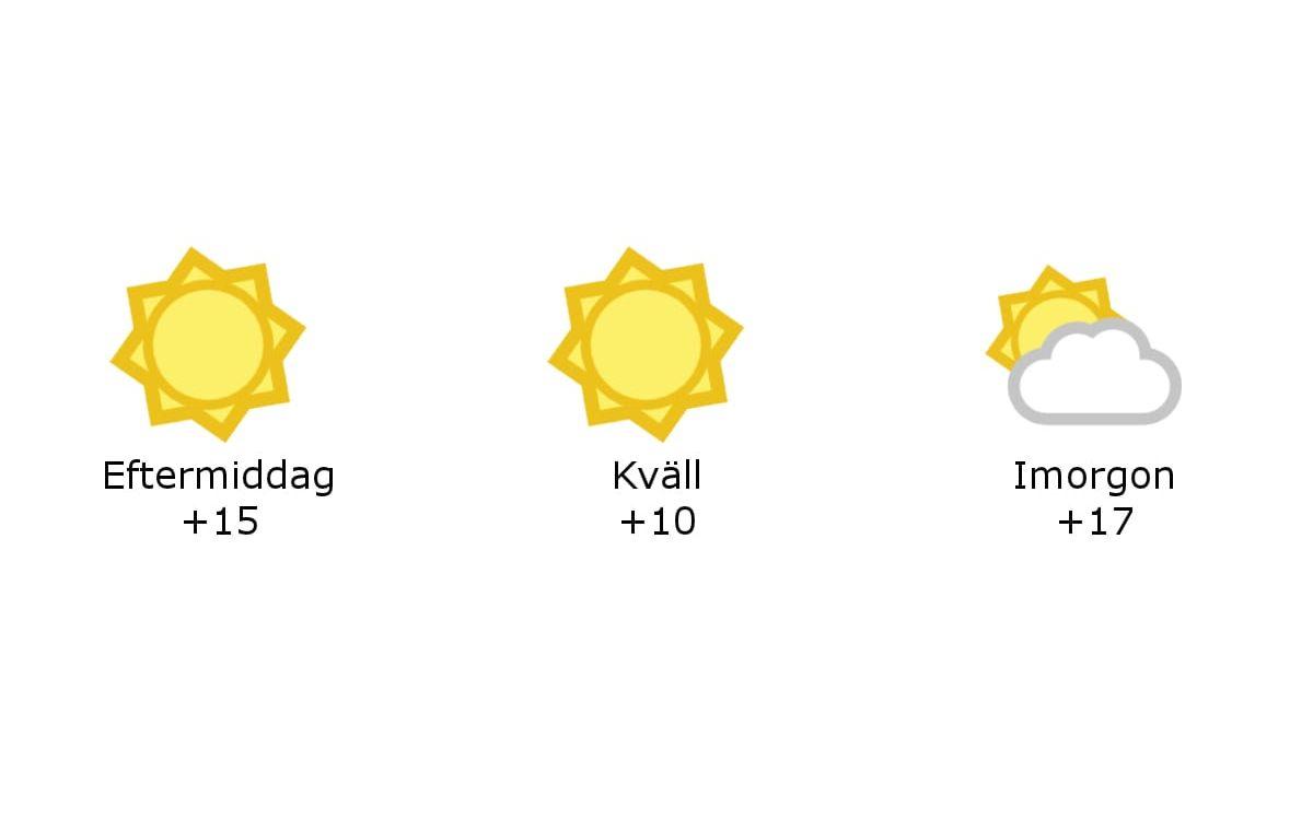Under eftermiddagen och kvällen bjuds det på soligt väder, svaga nordliga vindar och temperaturer kring 15 grader.