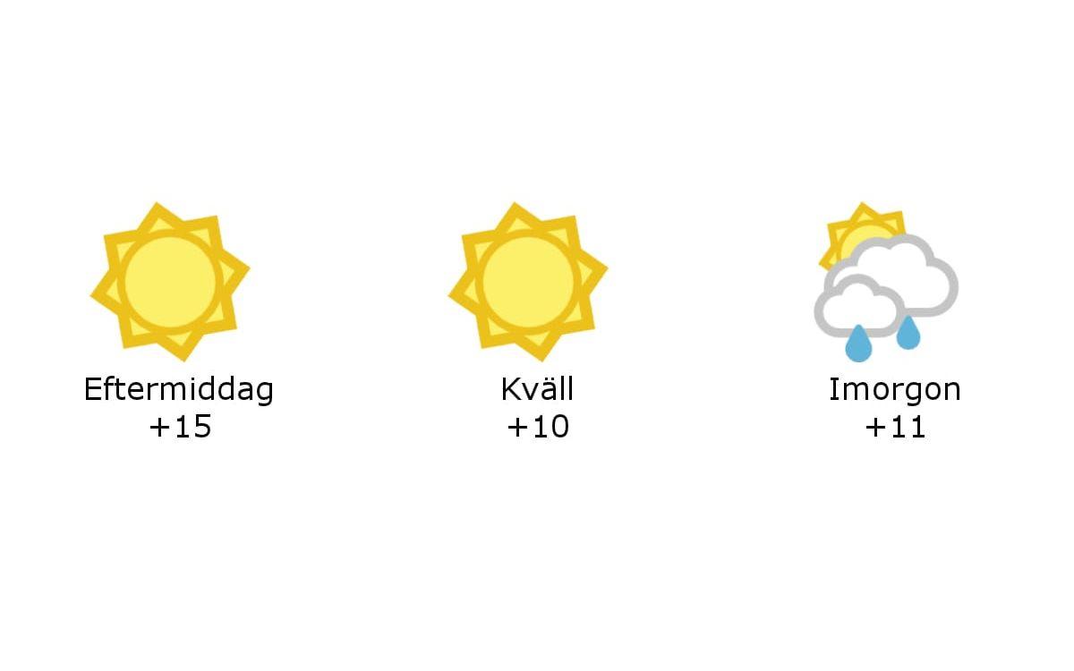 Under eftermiddagen och kvällen väntas det bli soligt väder, svaga nordvästliga vindar och temperaturer kring 15 grader.