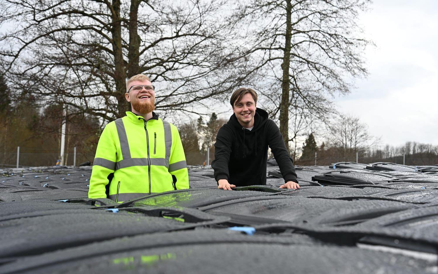 Den begränsade ytan gör att de fått ta paus i monteringsarbetet i väntan på att tunnorna körs ut. 30 tunnor får plats i en lastbil och fem lastbilar är i bruk.