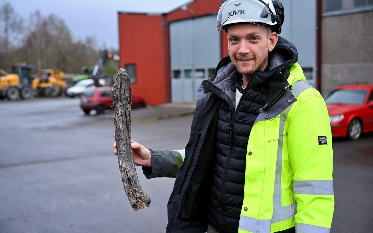 Det ingår i jobbet att ha kontakt med länsstyrelsen när det görs fynd som skulle kunna vara fornfynd. Jonas Edelberg reagerade själv över hur väl bevarad träbiten var.