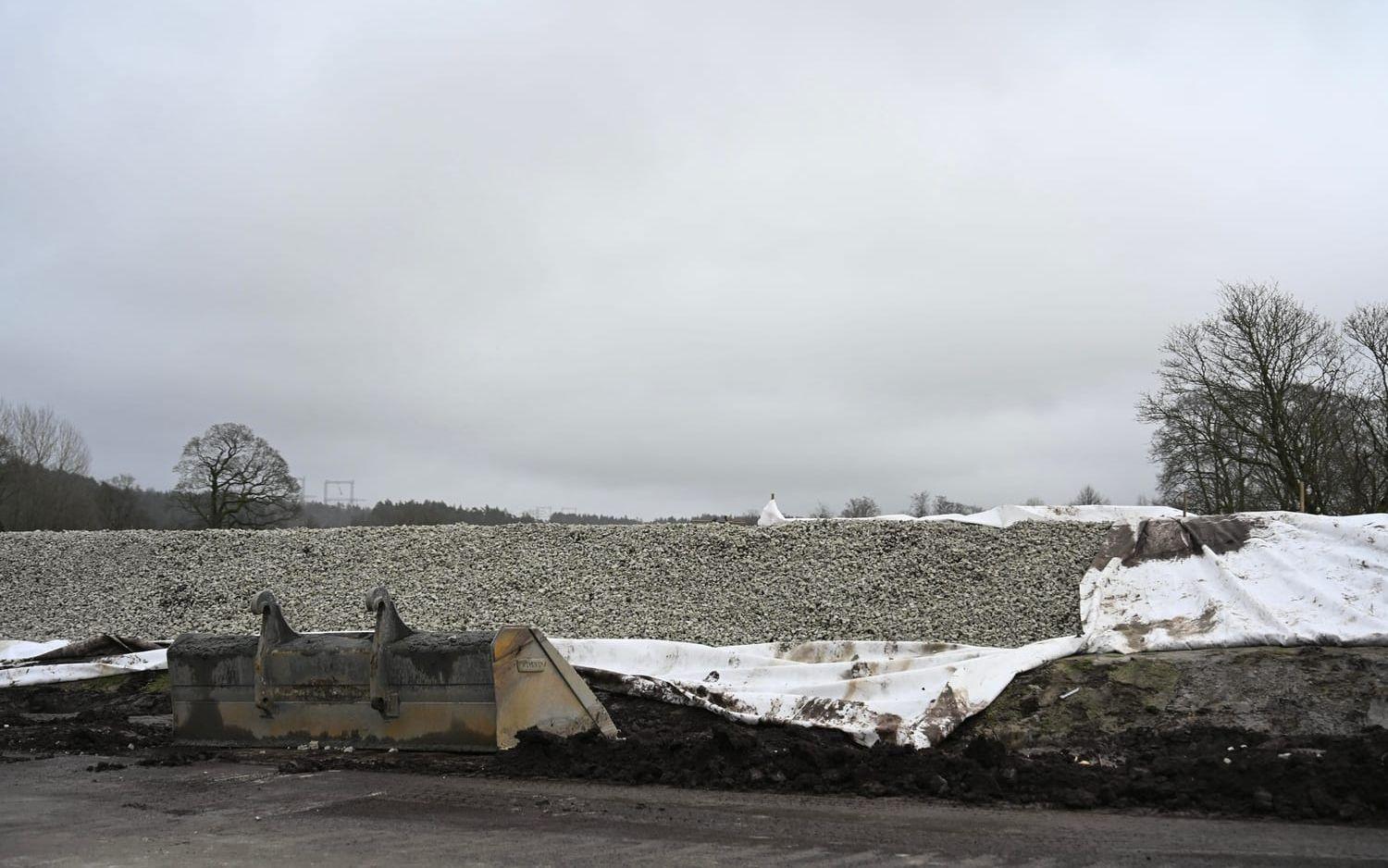 Schaktmassor har flyttats runt så att det ska bli jämnt fördelat och hamna på rätt ställen när allt är klart. Målet är att så mycket som möjligt av materialet som grävs upp ska kunna återanvändas när det har genomgått en kvalitetskontroll.