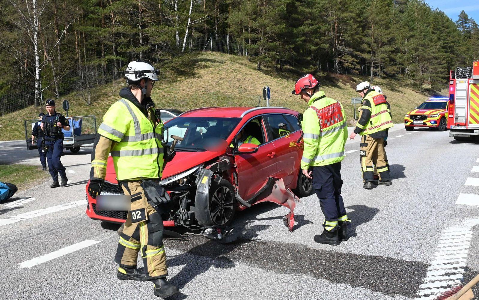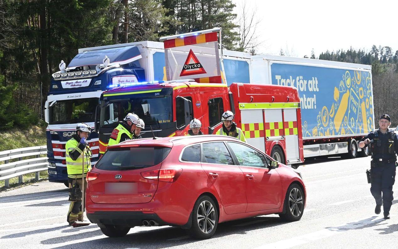 Ingen person ska skadats i olyckan, enligt räddningstjänsten. Trafiken påverkades dock under räddningsarbetet, men kring klockan 15.45 var den påsläppt igen.